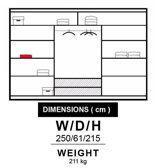 203cm / 250cm β Perfect for large bedrooms needing maximum storage.